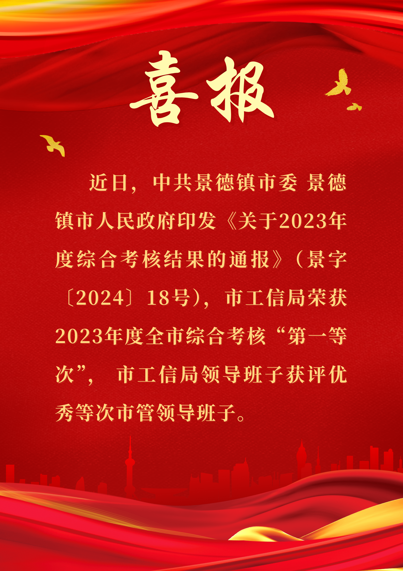 喜报!市工信局荣获全市综合考核第一等次